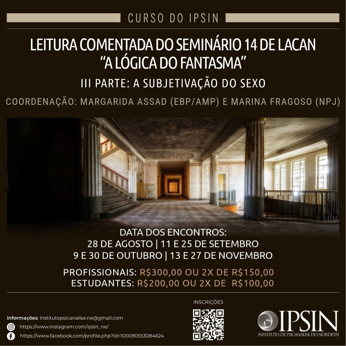 - Texto base: Capitulo XIV: Sobre o valor do gozo in: LACAN, O seminário, livro 14: A lógica do fantasma (1966-1967). Rio de Janeiro: Zahar, 2024.